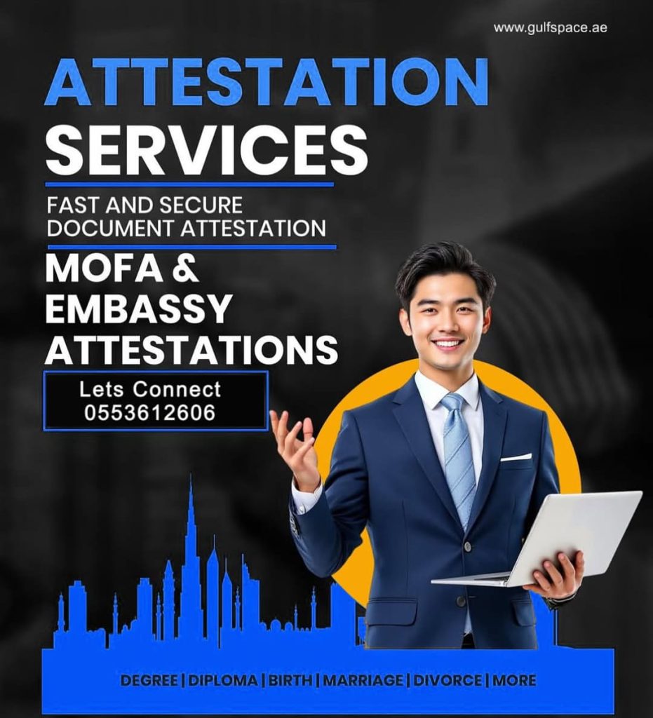 Fast and secure attestation for educational, marriage, commercial, and legal documents through MOFA, Embassy, and Ministry of Justice.