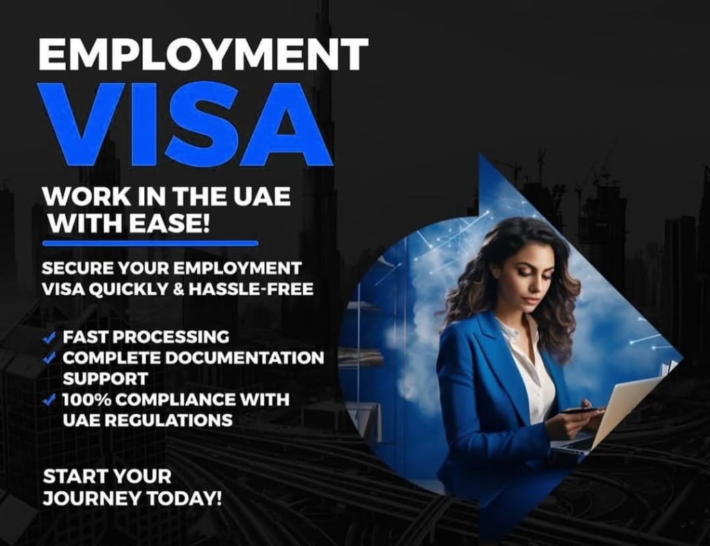 Processing of Golden, employment, family, free zone, and visit visas, along with travel and tour packages.